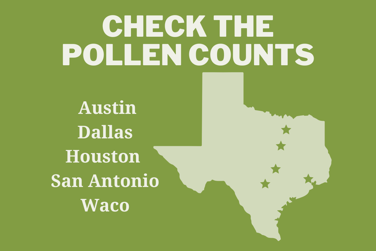 Check our weekday pollen counts for allergies in 5 major Texas cities, with natural allergy relief recommendations.